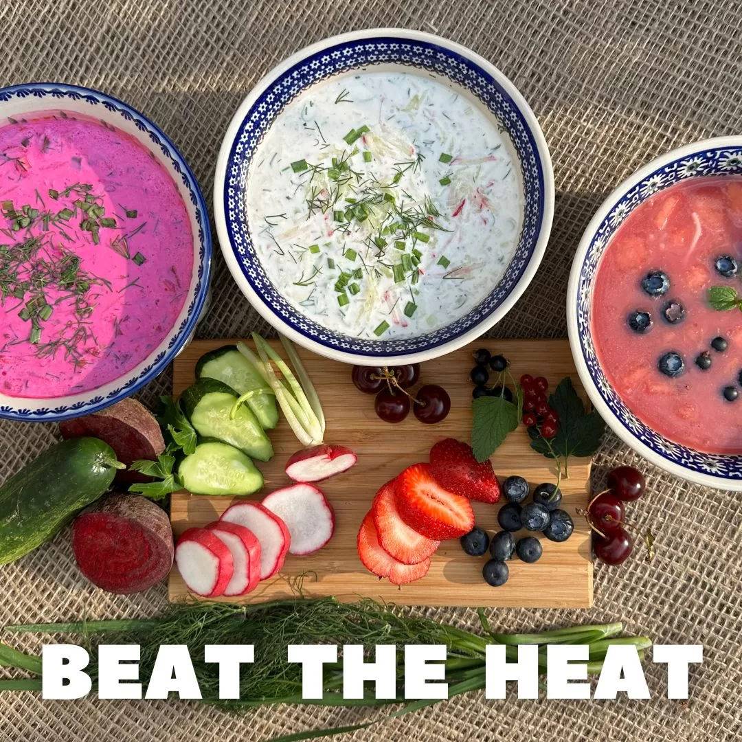 Beat the Heat and chill out with our coolest creations this season! Introducing our refreshing lineup of seasonal, vegetarian cold soups that’ll make your taste buds dance. Dive into the dreamy creaminess of Chłodnik White, the zesty zing of Chłodnik Pink, and the fruity fiesta of our cold Fruit Soup.