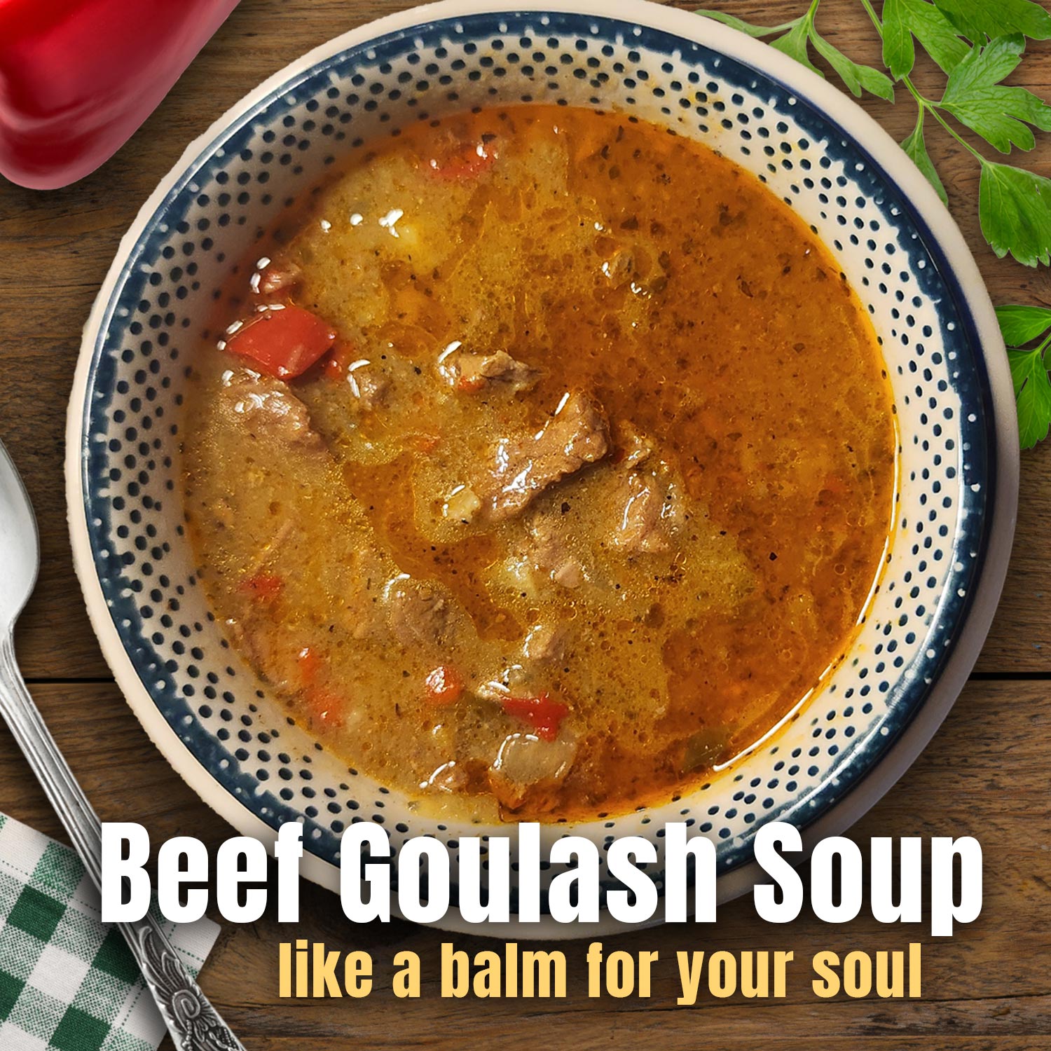 Our beef goulash soup is a hearty, comforting dish rooted in Eastern European tradition and full of bold, satisfying flavors. Slow-simmered to perfection, it’s packed with tender chunks of beef, fresh bell peppers, onions, tomatoes, and a medley of other tasty vegetables. Infused with aromatic herbs and spices, this one-pot wonder delivers deep, savory notes that grow richer with every bite.