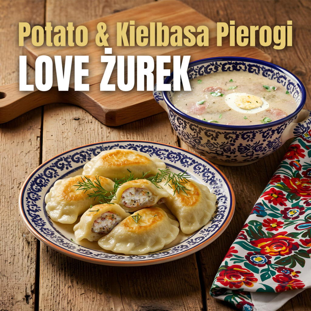Inspired by the rustic flavors of the Podkarpackie region – known for its wholesome, down-to-earth cuisine – these pierogi blend the creamy texture of mashed potatoes with the savory kick of kielbasa. We make them the traditional way: soft dough filled with mashed potatoes, pan-fried onions, and diced, smoky kielbasa – just like you’d find in a cozy countryside kitchen in southeastern Poland.